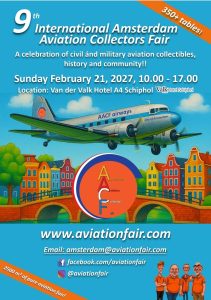aviationfair 2 November 2017 Calendar Tickets Add to Calendar Add to Timely Calendar Add to Google Add to Outlook Add to Apple Calendar Add to other calendar Export to XML When: 21 February 2027 @ 10:00 – 17:00 2027-02-21T10:00:00+01:00 2027-02-21T17:00:00+01:00 Where: van der Valk Hotel A4 Schiphol Rijksweg A 4 Nr.3 2132 MA Hoofddorp Cost: €7 Contact: Email Event website Amsterdam Aviation Collectors Fair