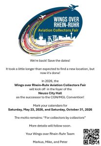 aviationfair 9 October 2025 No comment Calendar Add to Calendar Add to Timely Calendar Add to Google Add to Outlook Add to Apple Calendar Add to other calendar Export to XML When: 31 October 2026 @ 10:00 – 16:00 2026-10-31T10:00:00+01:00 2026-10-31T16:00:00+01:00 Where: Neuss City Hall Selikumer Strasse 25 41460 Neuss Deutschland